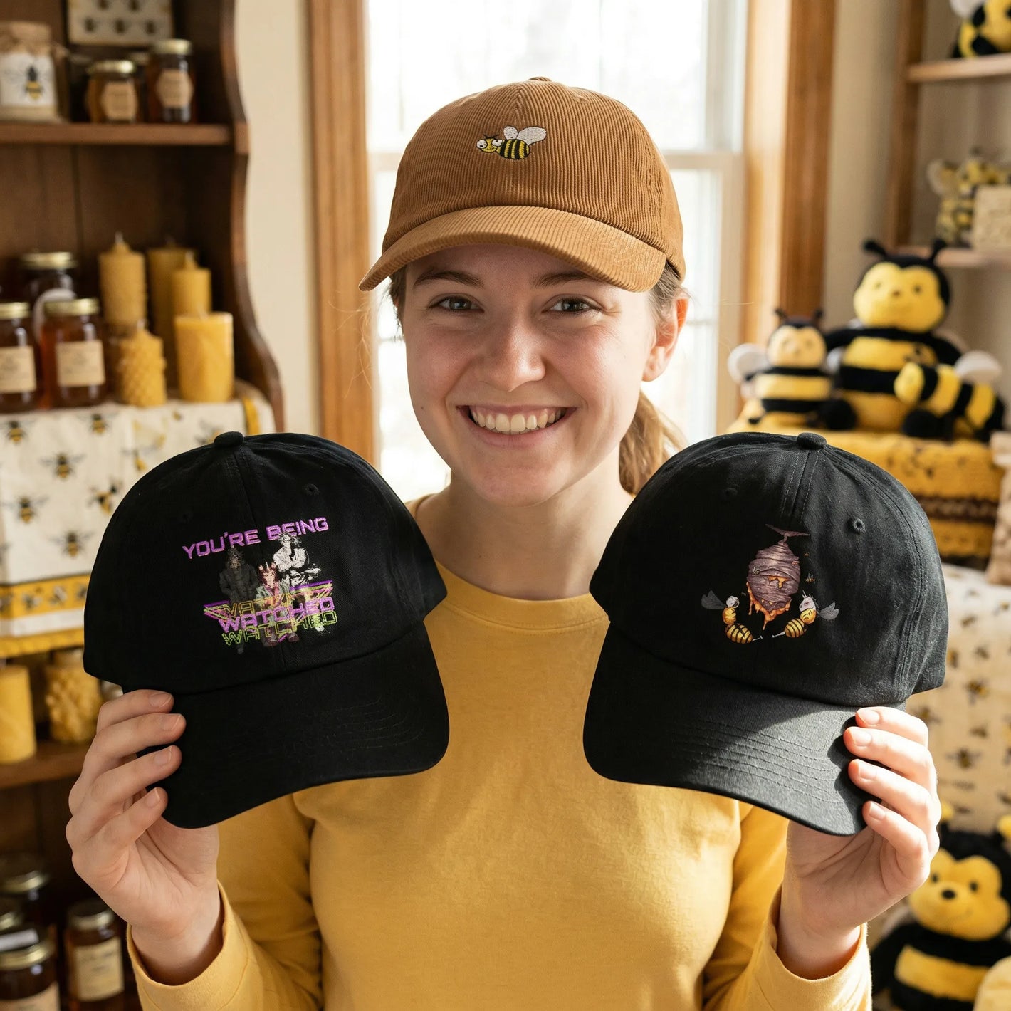 Honigwabe - Bienencap Premium - Cord & gestickt - Cap