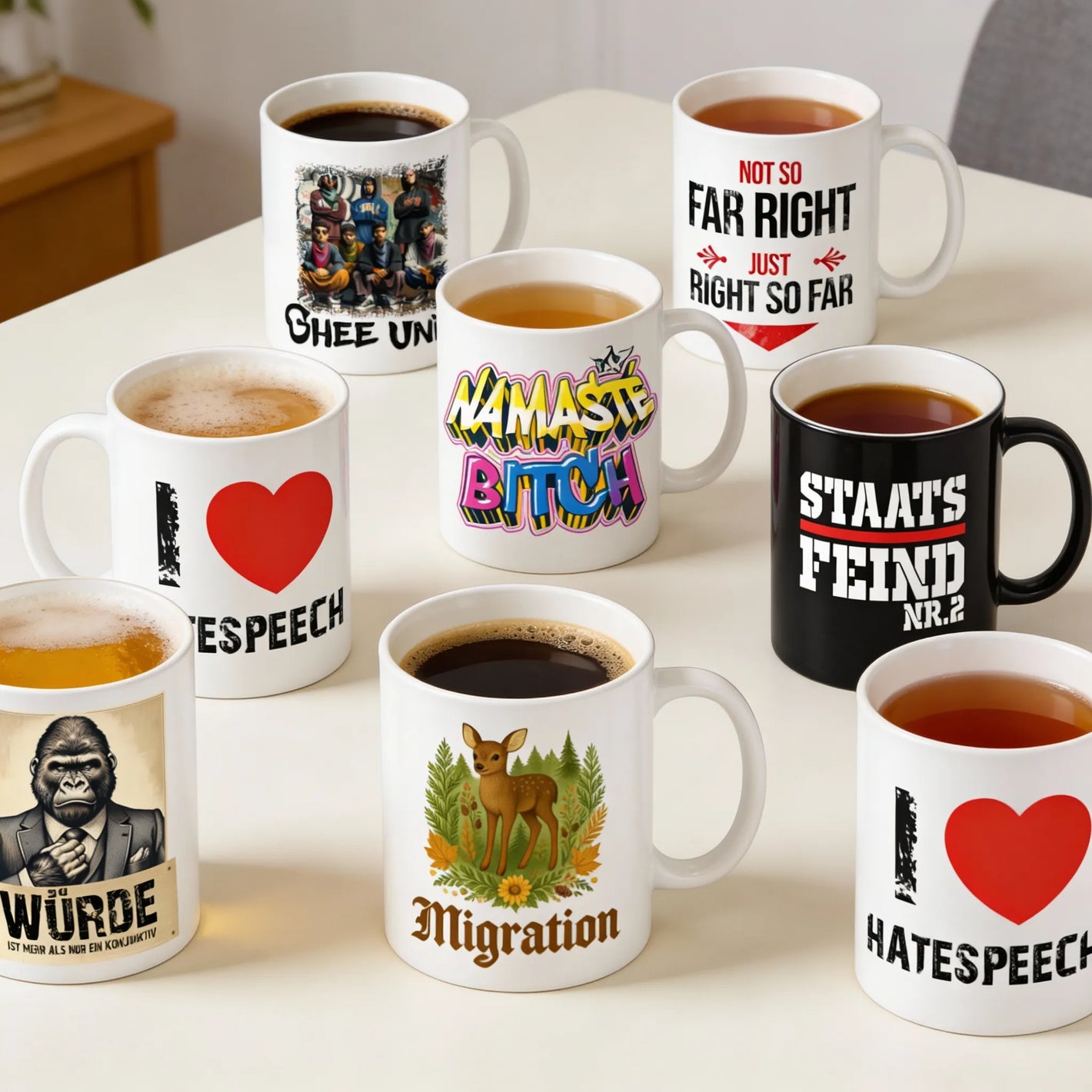 TASSENTassen mit Motiven zwischen harmlos und falsch verstanden.