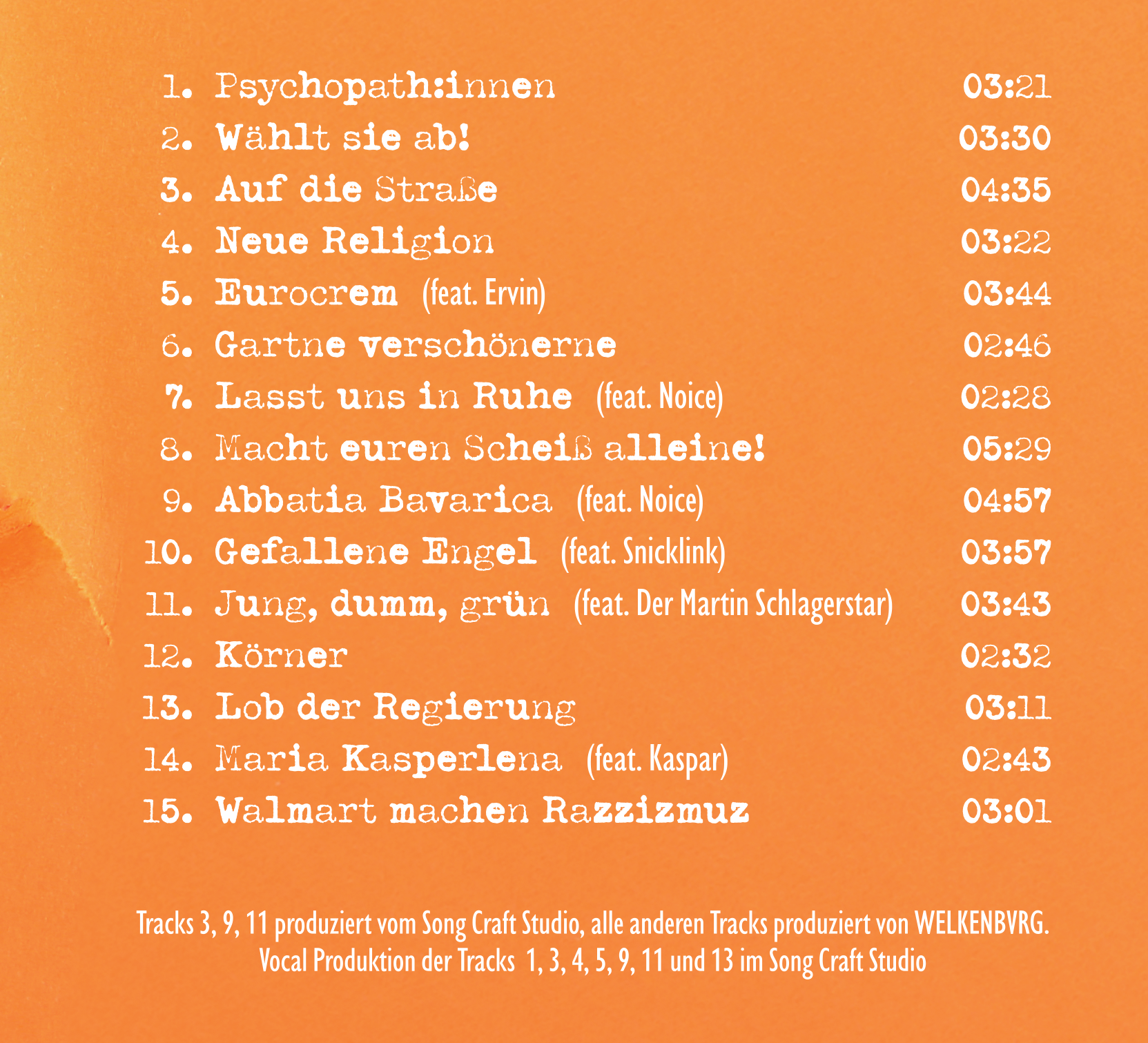 Tracks 3, 9, 11 produziert vom Song Craft Studio, alle anderen Tracks produziert von WELKENBVRG.